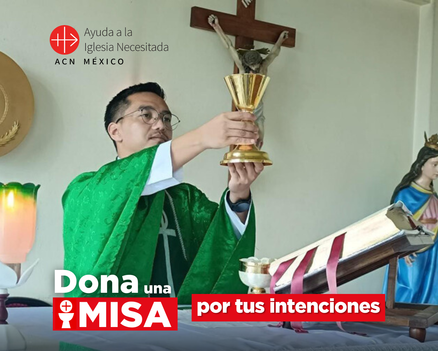 AL OFRECER UNA MISA a través de Ayuda a la Iglesia Necesitada, enviamos tu donativo a un sacerdote en México o en otros lugares del mundo que sufren dificultad, pobreza o persecución para que se sostengan y puedan ejercer su labor misionera y sacerdotal en su comunidad. A su vez el sacerdote celebrará la Eucaristía por tus necesidades e intenciones.