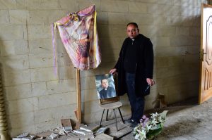 Fr. Thabet Habeb Mansur at the grave of Fr. Ragheed Ganni, a Chaldean priest who was killed in Mossul in 2007